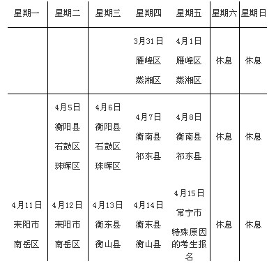衡阳考点现场确认具体安排: