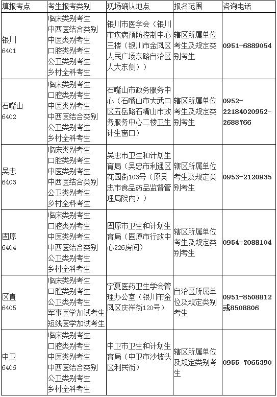 宁夏回族自治区2016年度医师资格考试报名时间及现场审核通知: