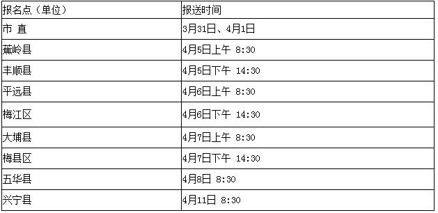 市医药科学研究所(梅江一路38号)受理市直单位报名材料现场确认,各县、区考生请留意单位所在地所属县区报名点的公告,及时完成现场确认工作,逾期未办理现场确认手续的考生,其网上的预报名无效。